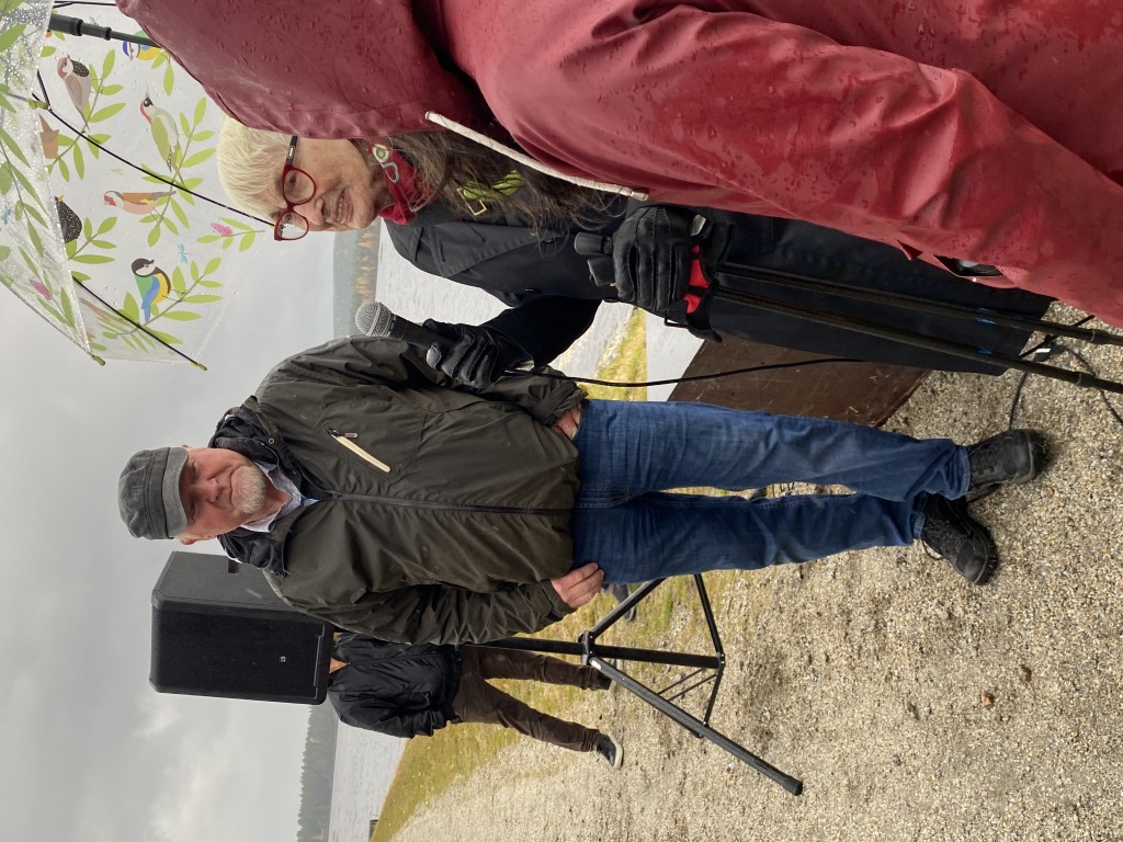 Lyckseles kommunalråd Roland Sjögren (KD) och donatorn Gudrun Rälg under invigningen av den nya strandpromenaden vid Umeälven.