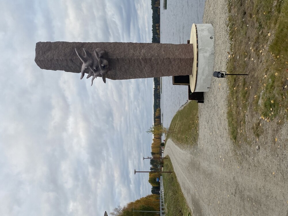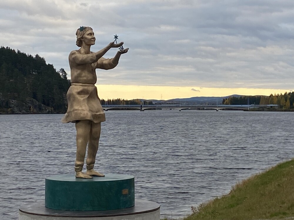 Utsmyckningarna, två skulpturer som fått varsin hedersplats invid Umeälven, har möjliggjorts genom en donation på tre miljoner kronor från 95-åriga Gudrun Rälg, bördig från Långsele utanför Lycksele. När hennes son Peter gick bort 2023 donerade hon en del av arvet från honom. Gudrun hade rest upp från Göteborg för att närvara vid den högtidliga ceremonin.
